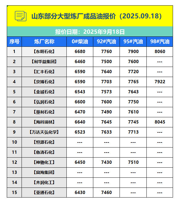 下一篇: 山东部分大型炼厂成品油报价(2025.09.17)