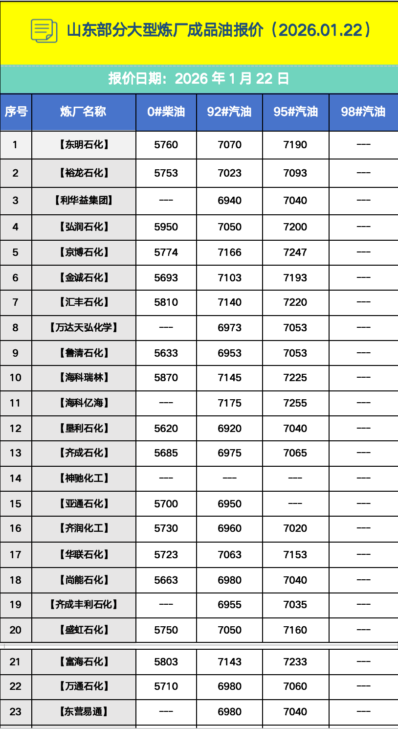 下一篇: 山东部分大型炼厂成品油报价(2026.01.21)