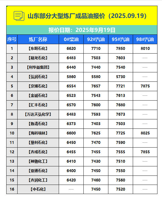 下一篇: 山东部分大型炼厂成品油报价(2025.09.18)