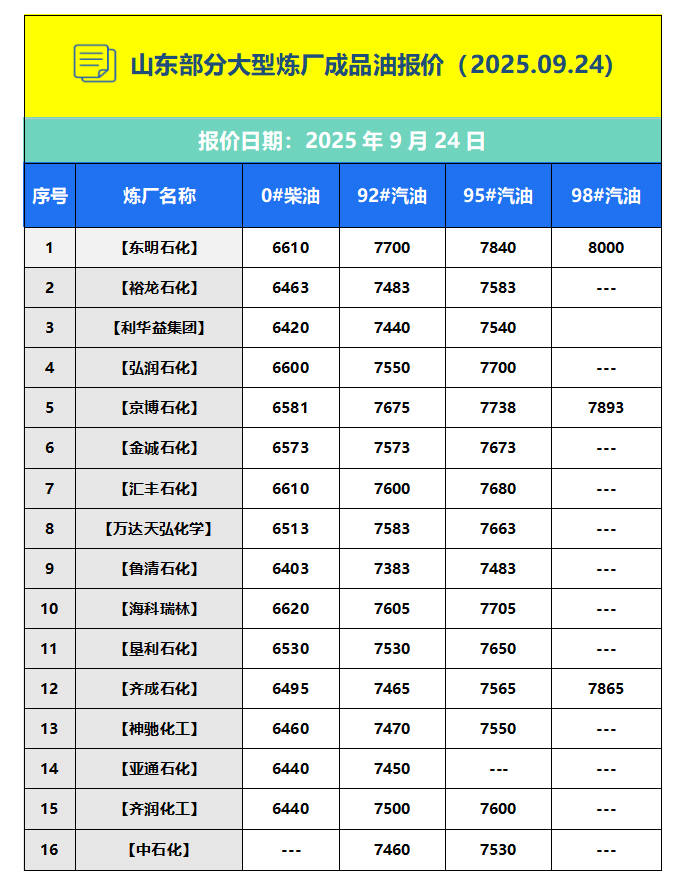 下一篇: 山东部分大型炼厂成品油报价(2025.09.23)