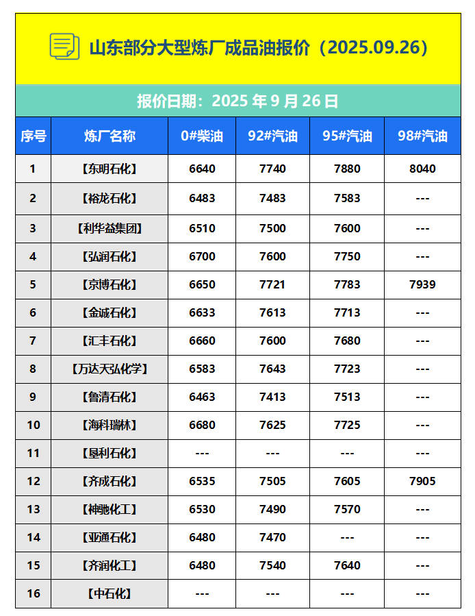 下一篇: 山东部分大型炼厂成品油报价(2025.09.25)