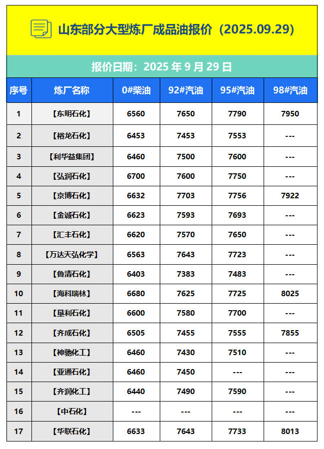 下一篇: 山东部分大型炼厂成品油报价(2025.09.28)