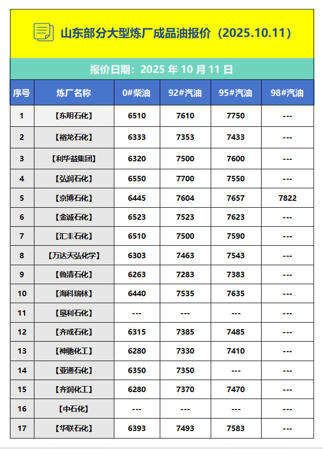 下一篇: 山东部分大型炼厂成品油报价(2025.10.10)