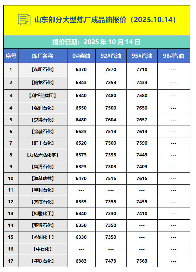 下一篇: 山东部分大型炼厂成品油报价(2025.10.13)