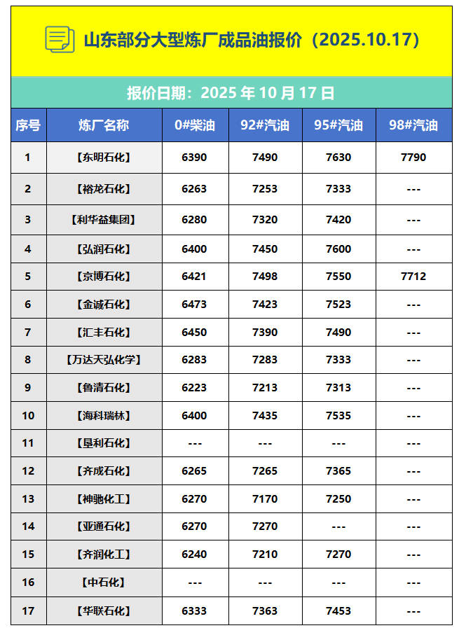 下一篇: 山东部分大型炼厂成品油报价(2025.10.16)