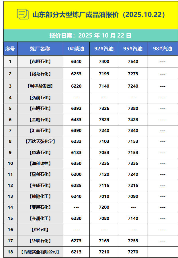 下一篇: 山东部分大型炼厂成品油报价(2025.10.21)