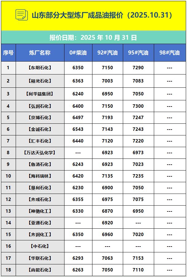 下一篇: 山东部分大型炼厂成品油报价(2025.10.30)