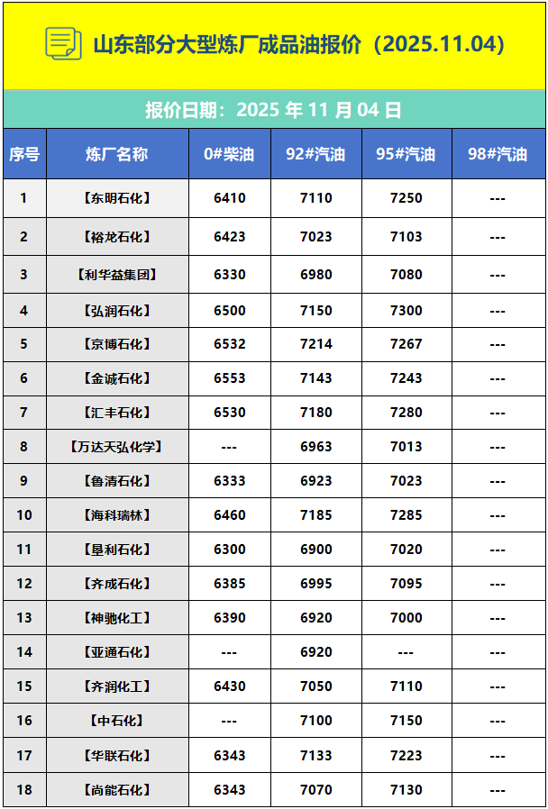 下一篇: 山东部分大型炼厂成品油报价(2025.11.03)