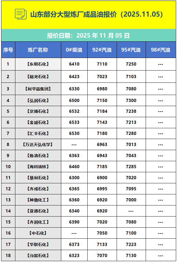 下一篇: 山东部分大型炼厂成品油报价(2025.11.04)