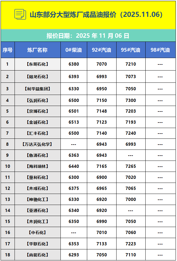 下一篇: 山东部分大型炼厂成品油报价(2025.11.05)