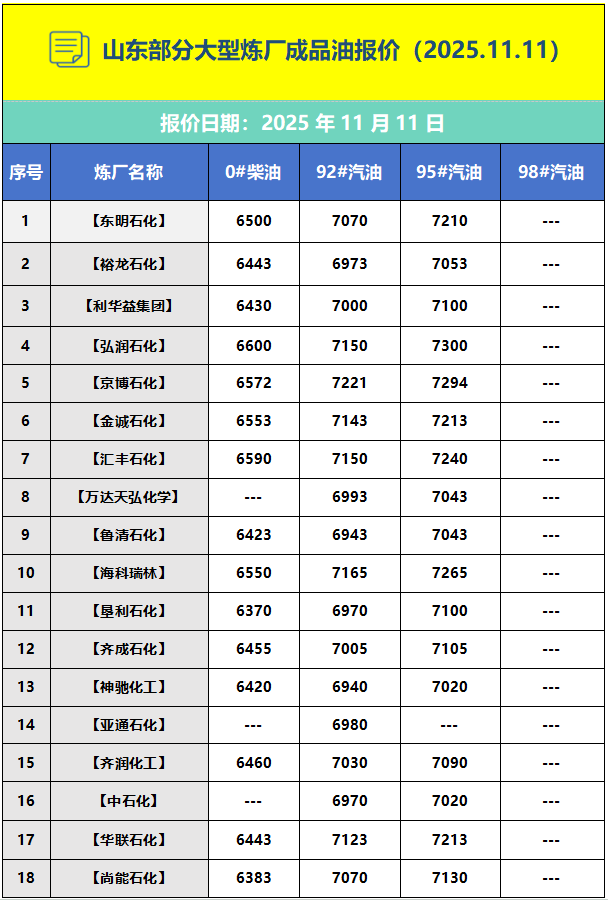 下一篇: 山东部分大型炼厂成品油报价(2025.11.10)
