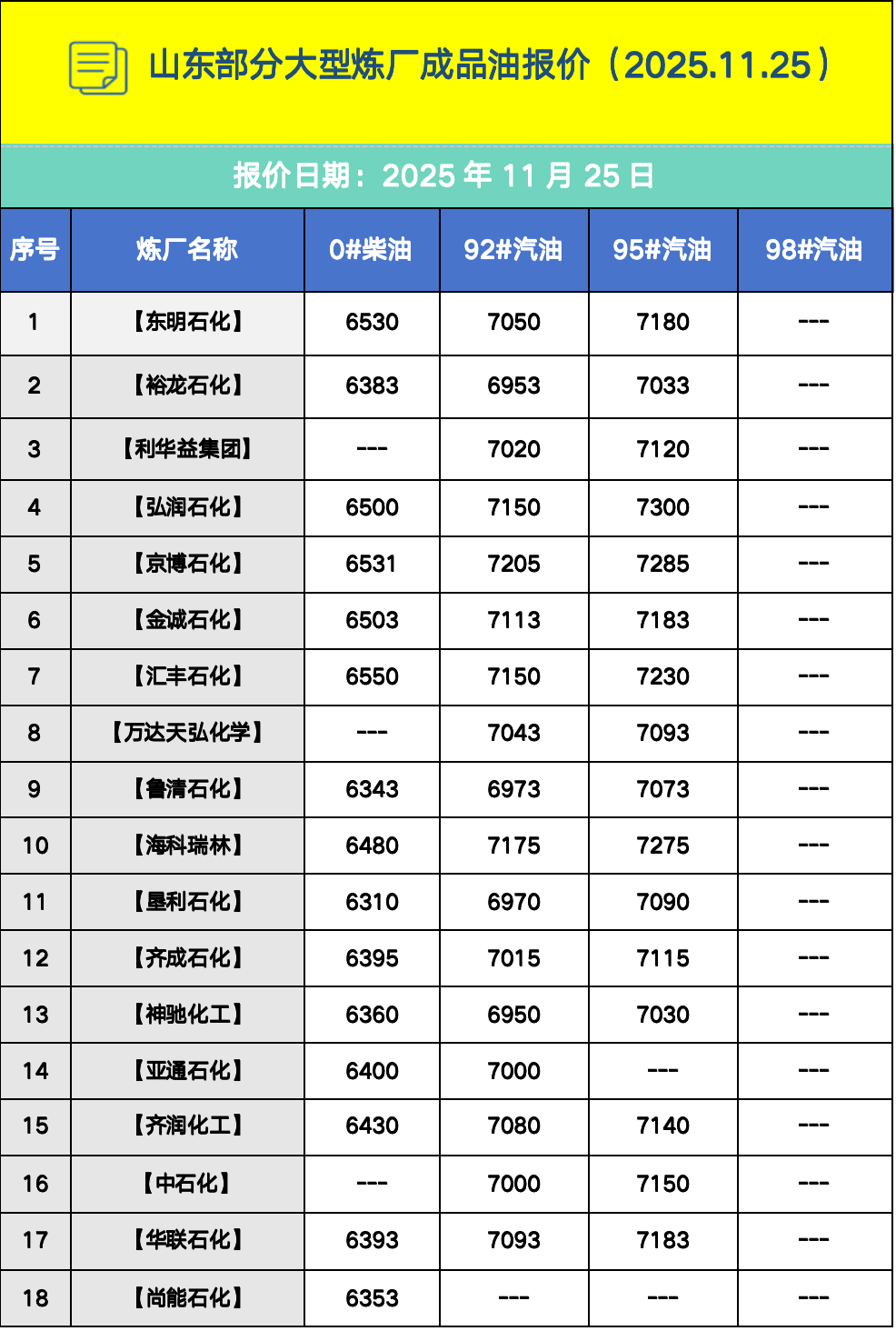 下一篇: 山东部分大型炼厂成品油报价(2025.11.24)