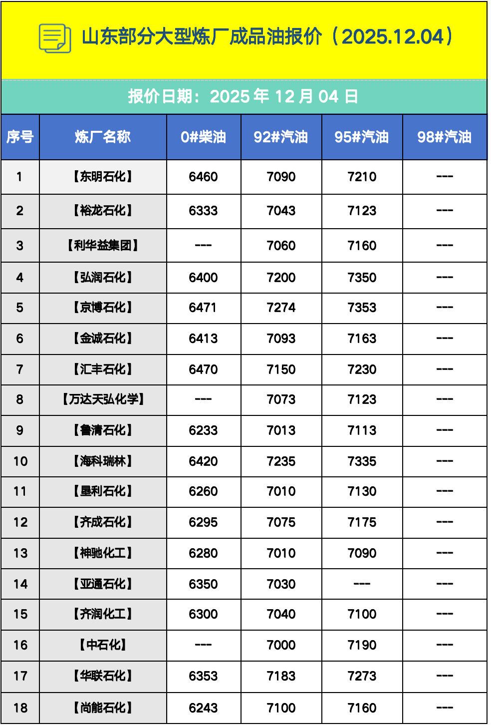 上一篇: 山东部分大型炼厂成品油报价(2025.12.12)