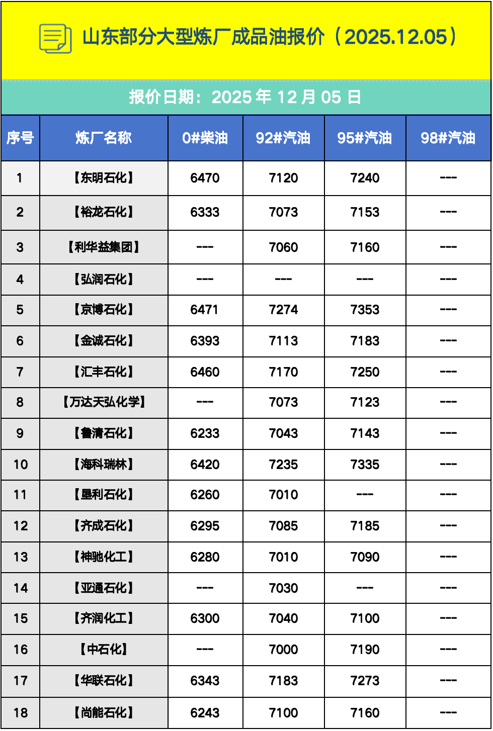 上一篇: 山东部分大型炼厂成品油报价(2025.12.12)