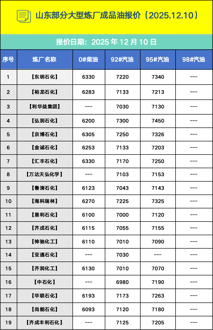 上一篇: 山东部分大型炼厂成品油报价(2025.12.12)