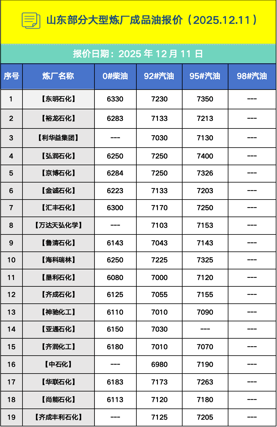 下一篇: 山东部分大型炼厂成品油报价(2025.12.10)
