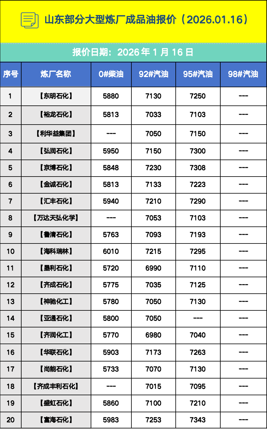 下一篇: 山东部分大型炼厂成品油报价(2026.01.15)