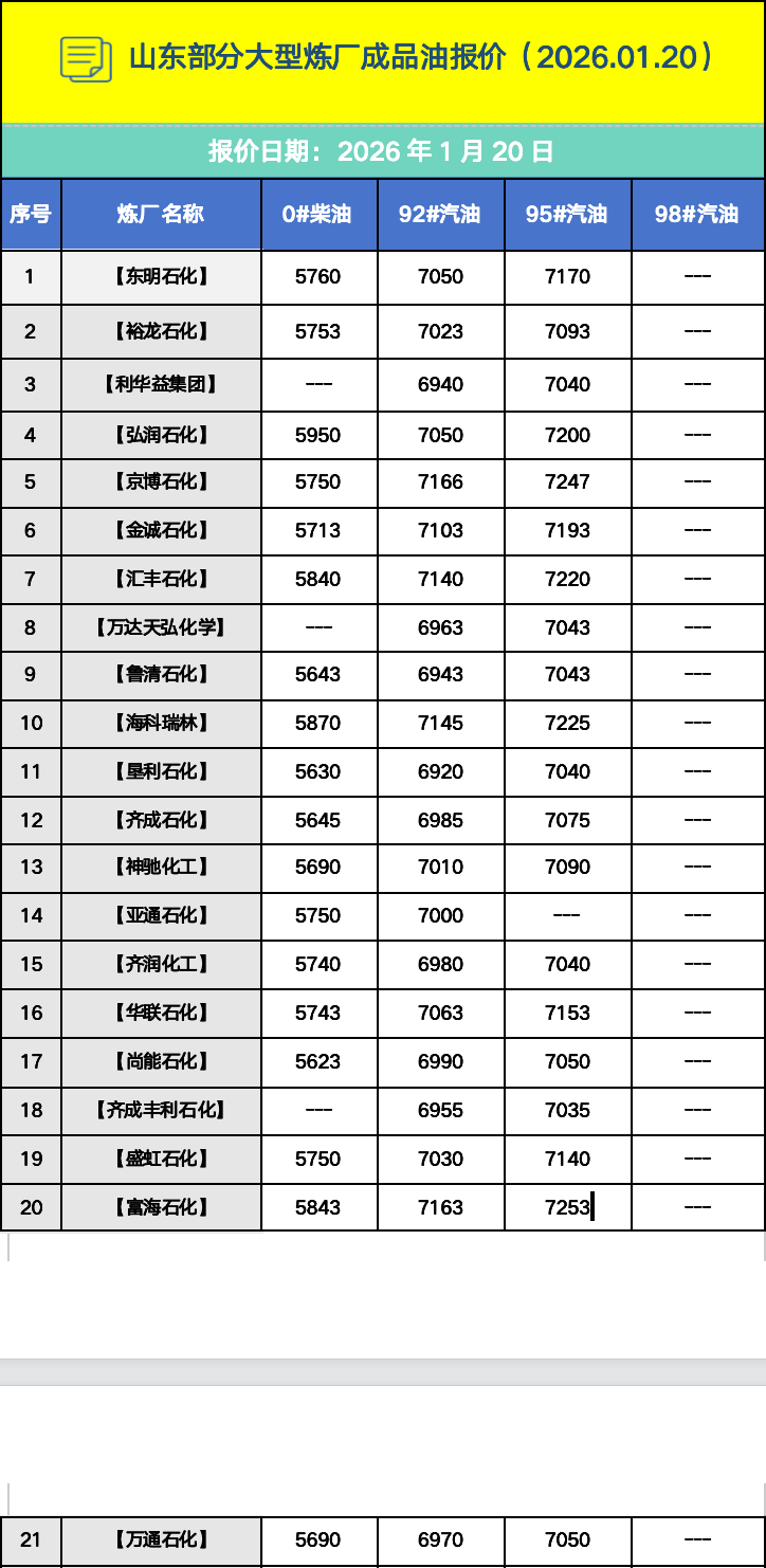 下一篇: 山东部分大型炼厂成品油报价(2026.01.19)